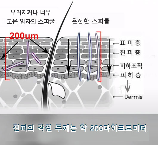 추츨한 스피큘은 피부에 매우